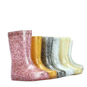 Por encargo Popular superventas brillo brillante OEM barato niños botas de agua de plástico gelatina Rosa mariposa Gumboots para niños